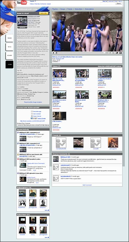The Nude in a Scarf Youtube channel was the number one viewed channel in the UK and the seventh viewed globally: